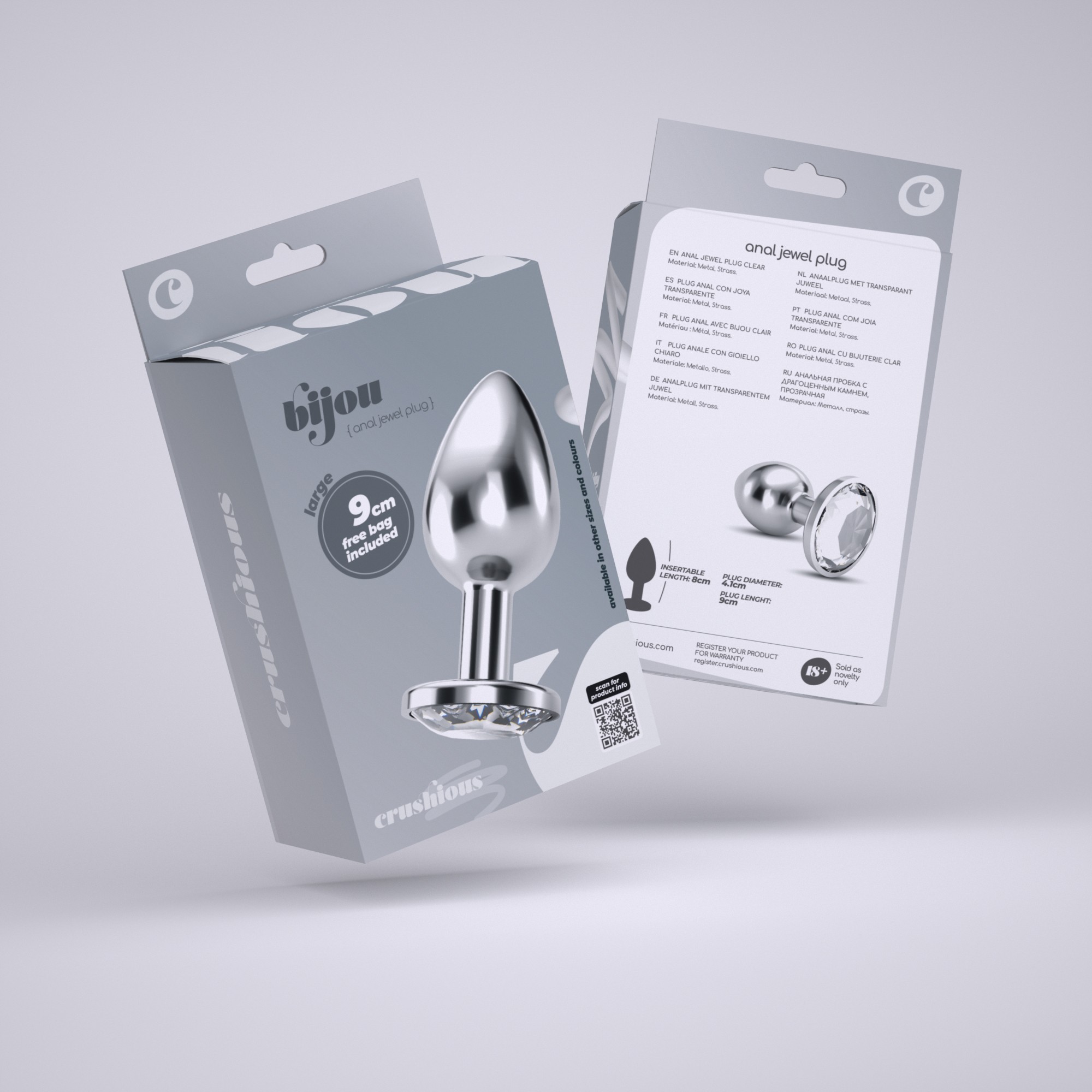 Arrenditi nel modo più lussuoso! Crushious presenta la collezione di gioielli anali più ambita ed elegante. Bijou ti porta un sofisticato butt plug, disponibile in tre dimensioni. Scegli il tuo colore preferito e dai più glamour alla tua vita intima.