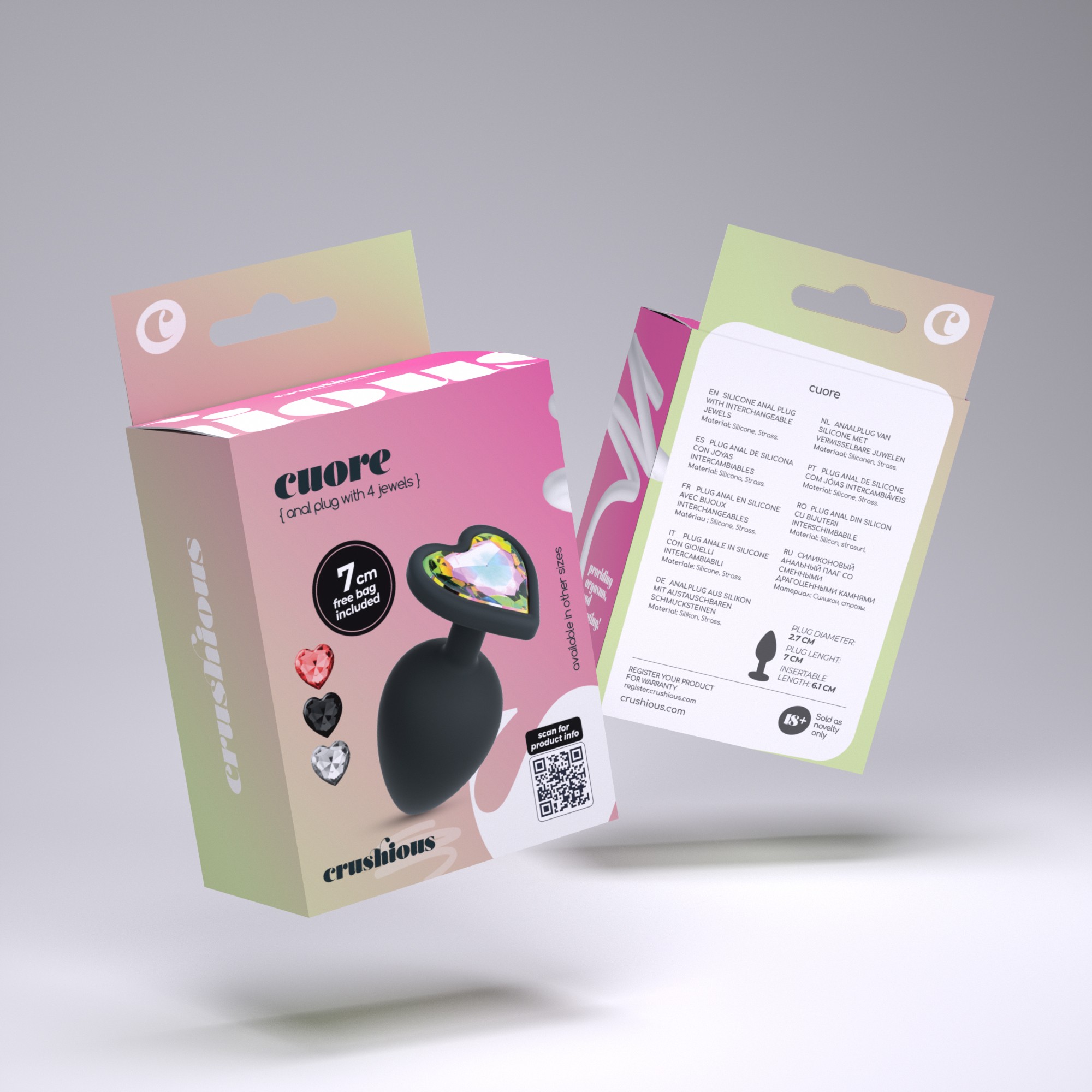 Cuore não é apenas um plug anal de silicone, ele vem com pedras de strass intercambiáveis que combinam com o teu humor.